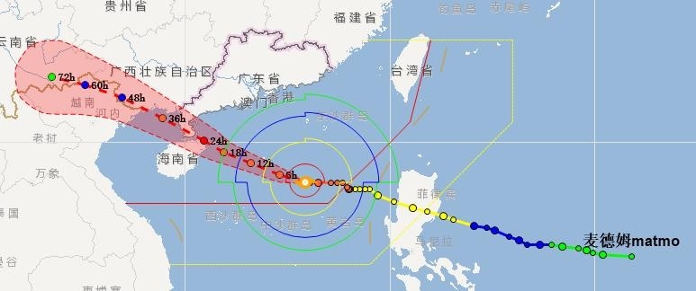预计,“麦德姆”将以每小时25公里左右的速度向西偏北方向移动,强度逐渐增强,并向广东西部到海南岛东部一带沿海靠近,将于5日上午在茂名电白至海南万宁一带沿海登陆(台风级或强台风级,13~14级),登陆后强度逐渐减弱。