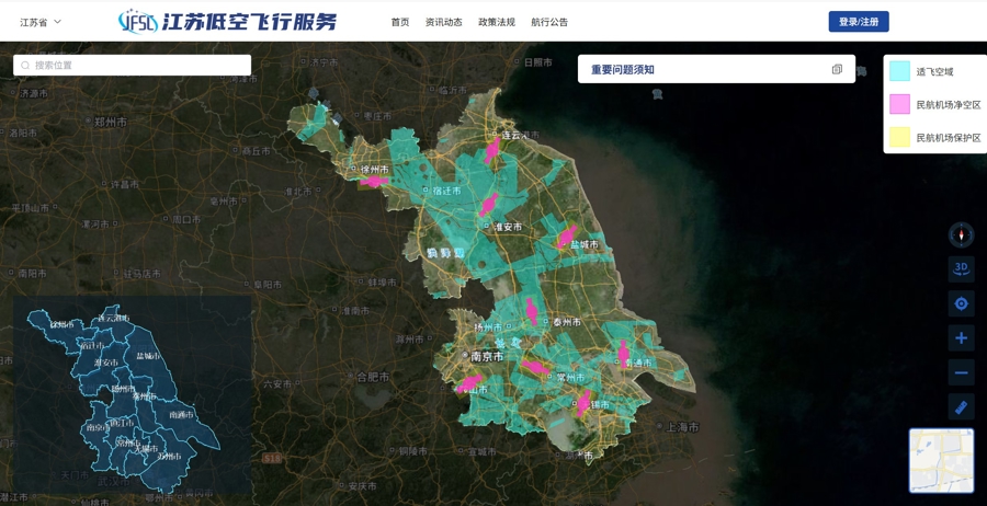 近期华融配资,江苏省低空飞行服务中心根据《无人驾驶航空器飞行管理暂行条例》规定,公布江苏微型、轻型、小型无人驾驶航空器适飞空域范围。